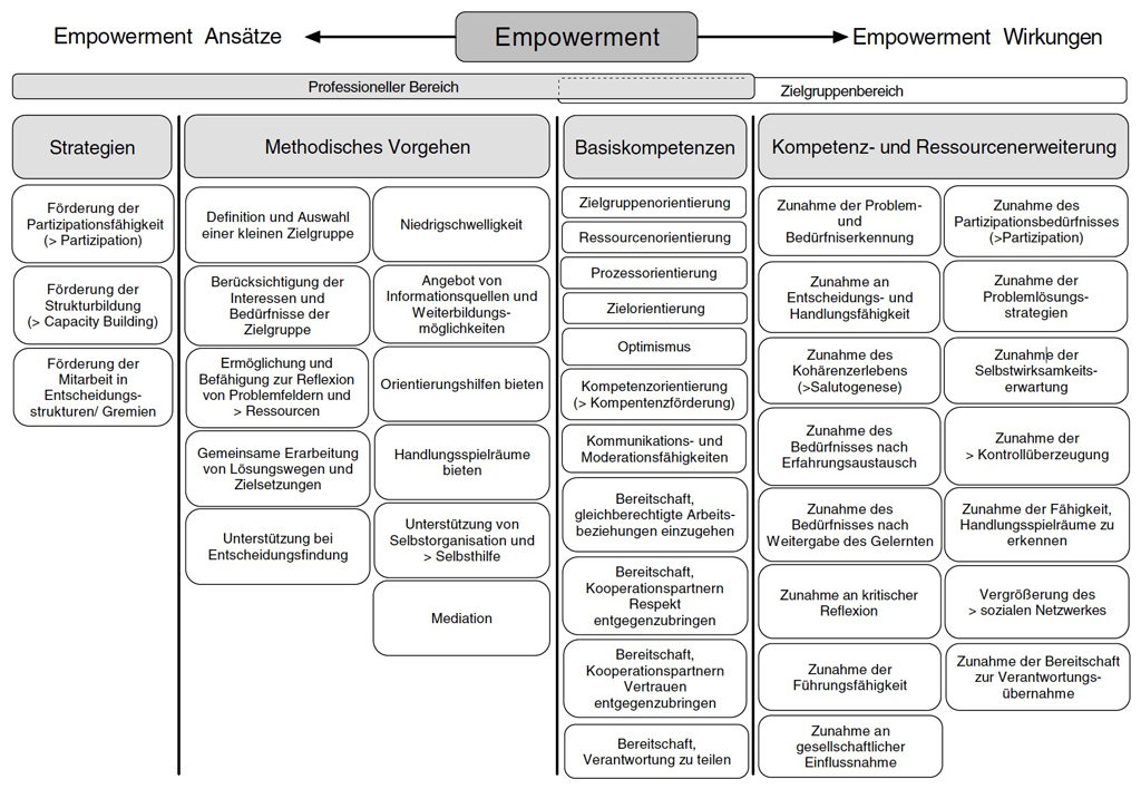 Diese nachhaltige Arbeitsplatzbefähigung beschreibt die Bundeszentrale für gesundheitliche Aufklärung (BZgA) in einem umfassend Bericht. Dabei werden die Schlagworte Empowerment, Befähigung, Partizipation, Kompetenzförderung und Salutogenese in den Mittelpunkt der Abhandlung gestellt.
